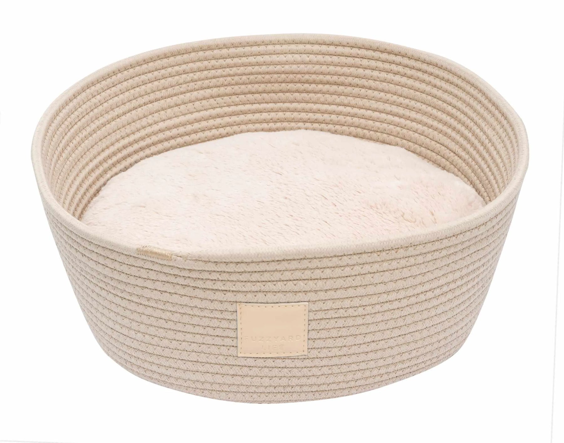 The FuzzYard Life Rope Basket Bed blends minimalist design with cozy sophistication, featuring a plush, dual-sided cushion that adapts to the seasons—a warming plush for winter and breathable cotton for summer. Thoughtfully crafted for both comfort and aesthetics, it's the ultimate nest for cats and small dogs who enjoy the finer things in life.