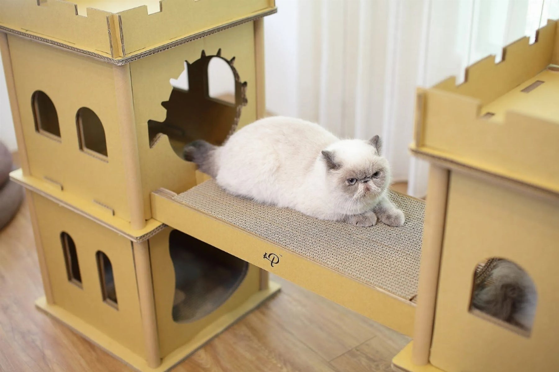 Perfect for multi-pet households or solo royalty, this cardboard castle mimics your pet’s natural habitat, helping them feel safe, secure, and wildly entertained.
